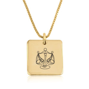 שרשרת תליון מרובע עם חריטת סמל מזל מאזניים