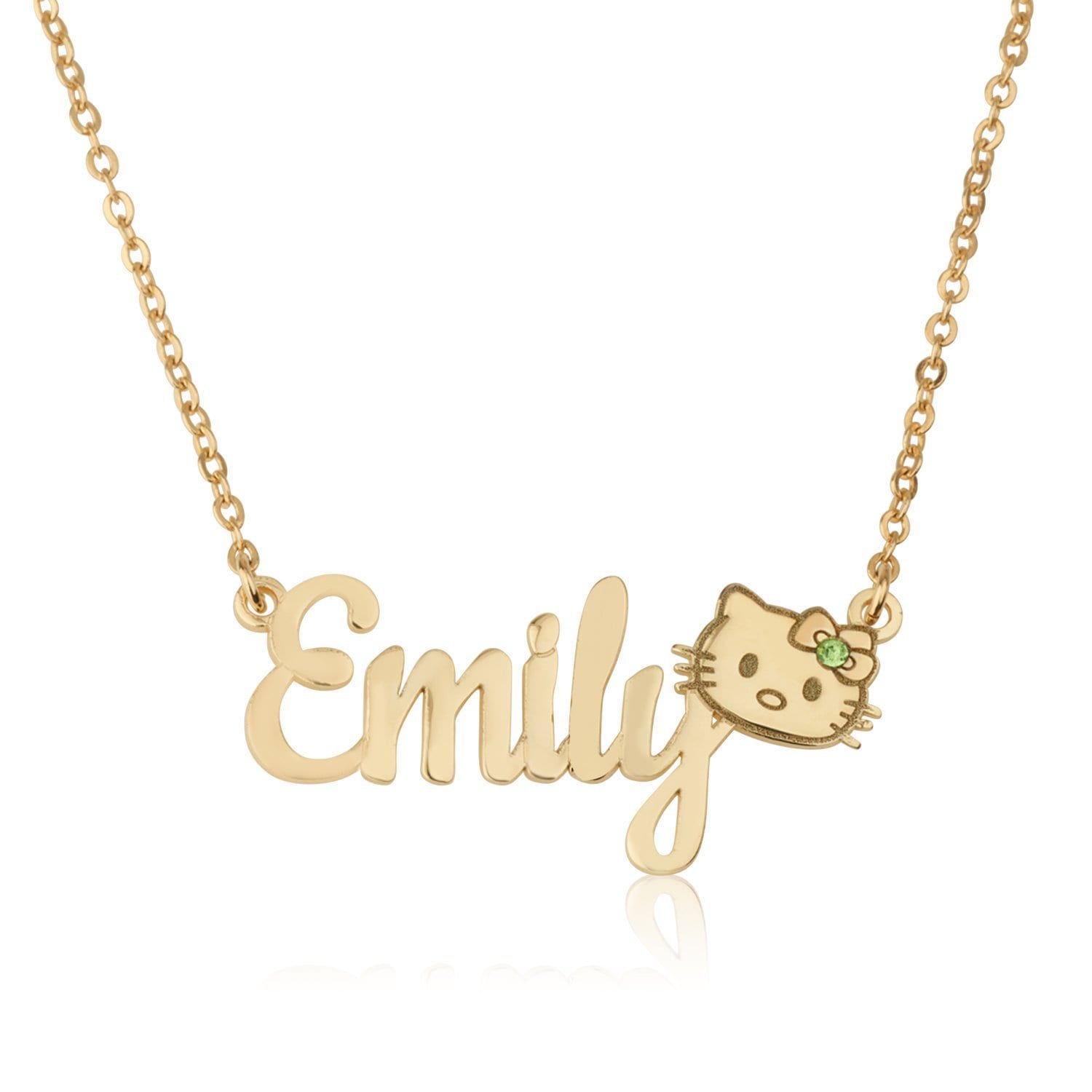 שרשרת שם בשילוב סמל הלו קיטי ואבן לידה