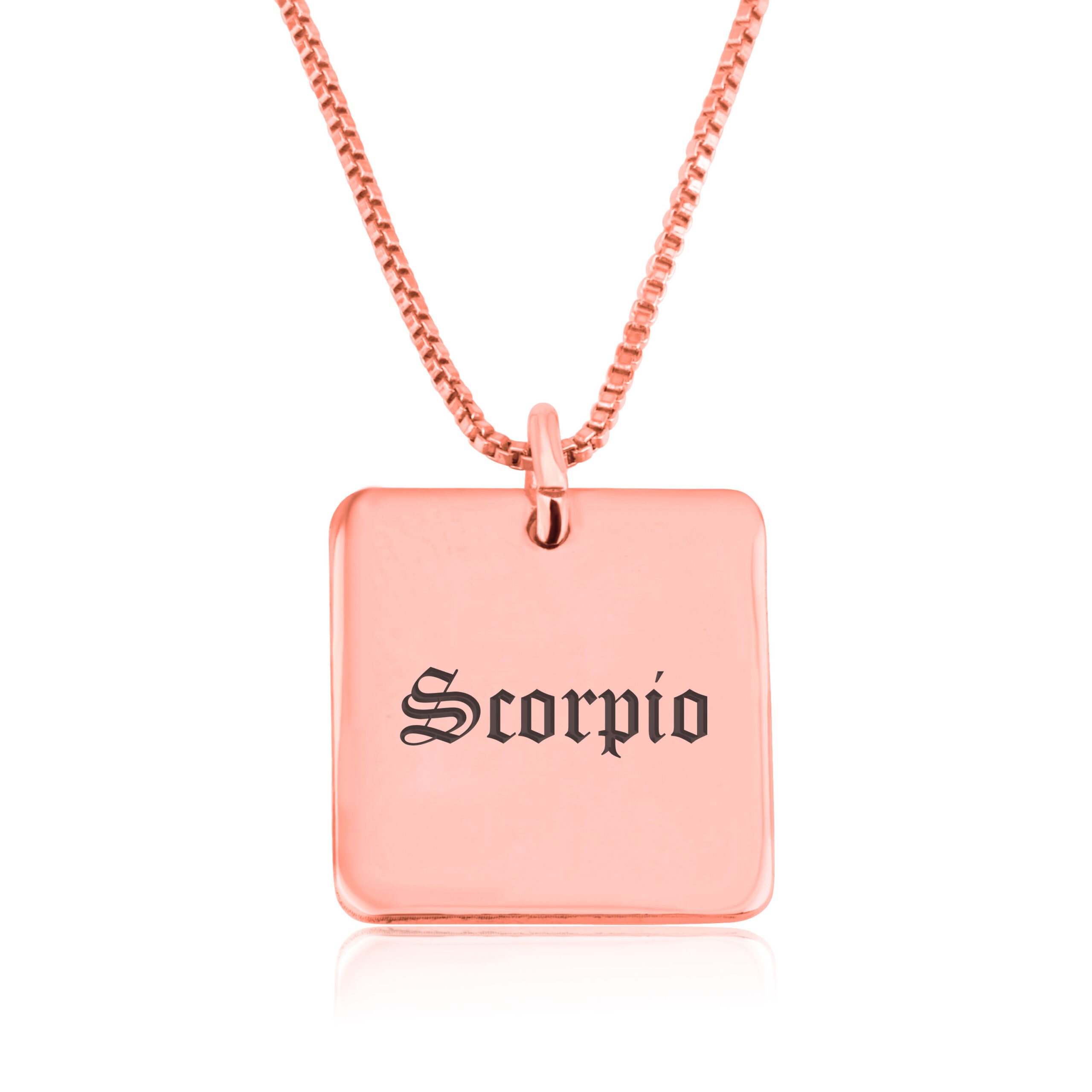 שרשרת תליון מרובע עם חריטת כיתוב מזל עקרב בסגנון גותי