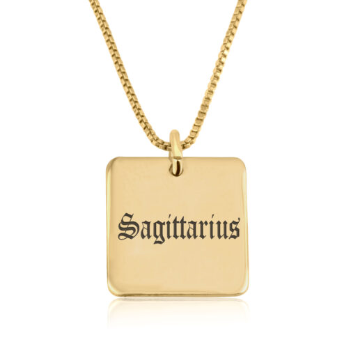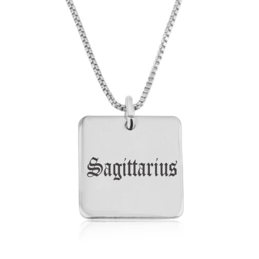 שרשרת תליון מרובע עם חריטת כיתוב מזל קשת בסגנון גותי